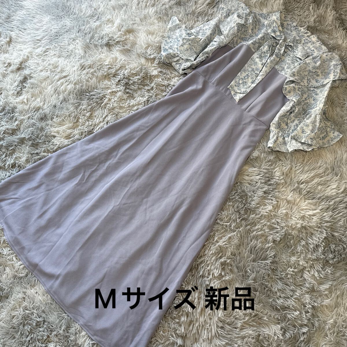- ネックリボンフリル花柄切替ロングワンピースラベンダーM★ゆうパケット配送可能★新品15