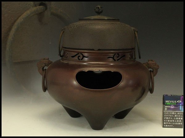 - 【銀閣】畠春斎作 伝 銅 風炉釜 茶道具 未使用 旧家蔵出 送料無料(LC434)