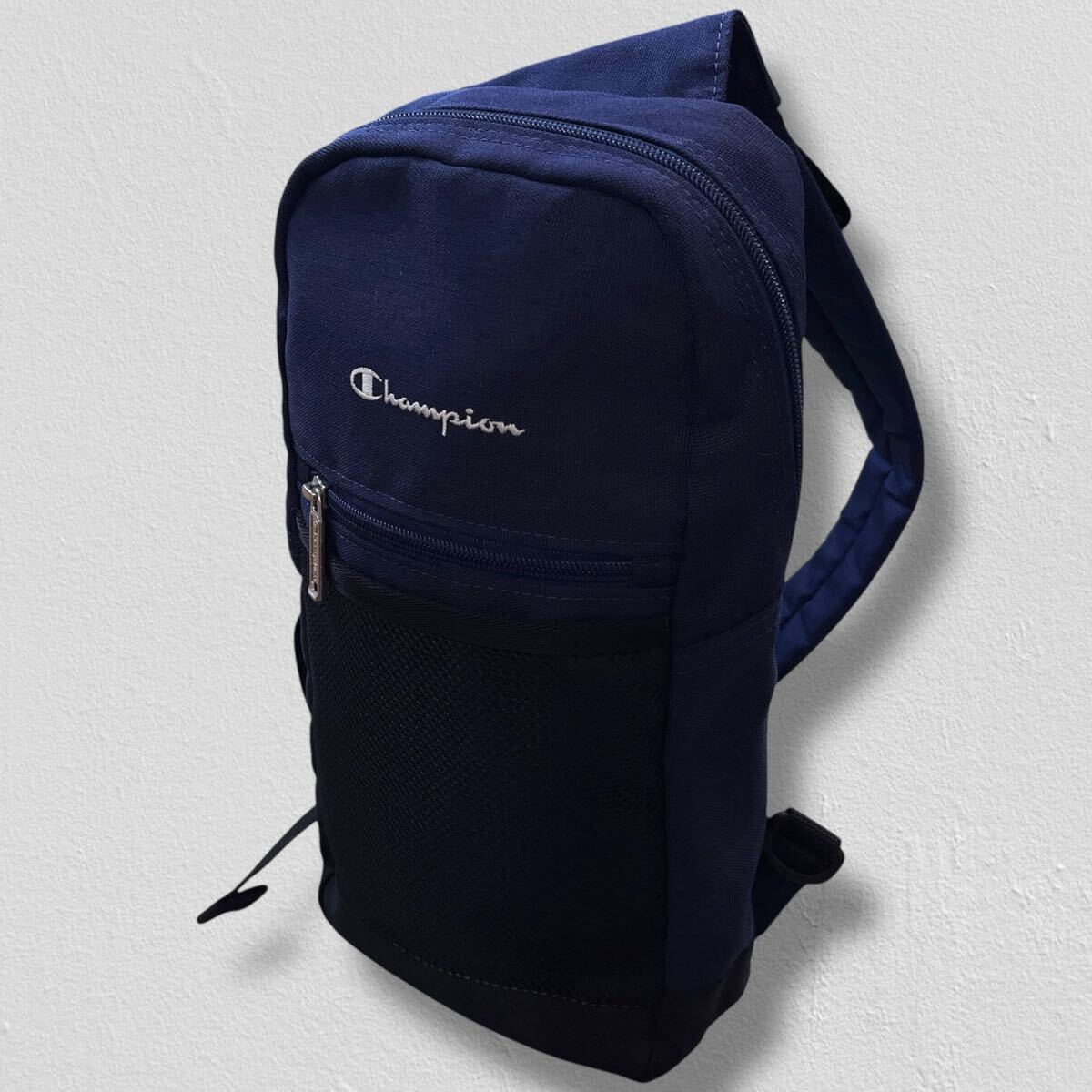 - Champion ボディバッグ 斜め掛け ネイビーブルー ●洗濯プレス済● チャンピオン リュック ナイロン 古着/708