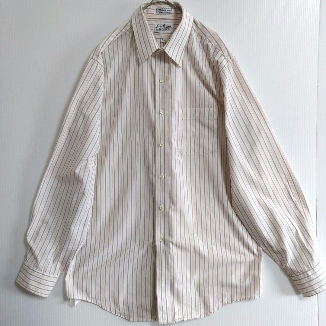 - 2696 SEARSROEBUCK 長袖ワイシャツL 薄黄色 ストライプ US古着
