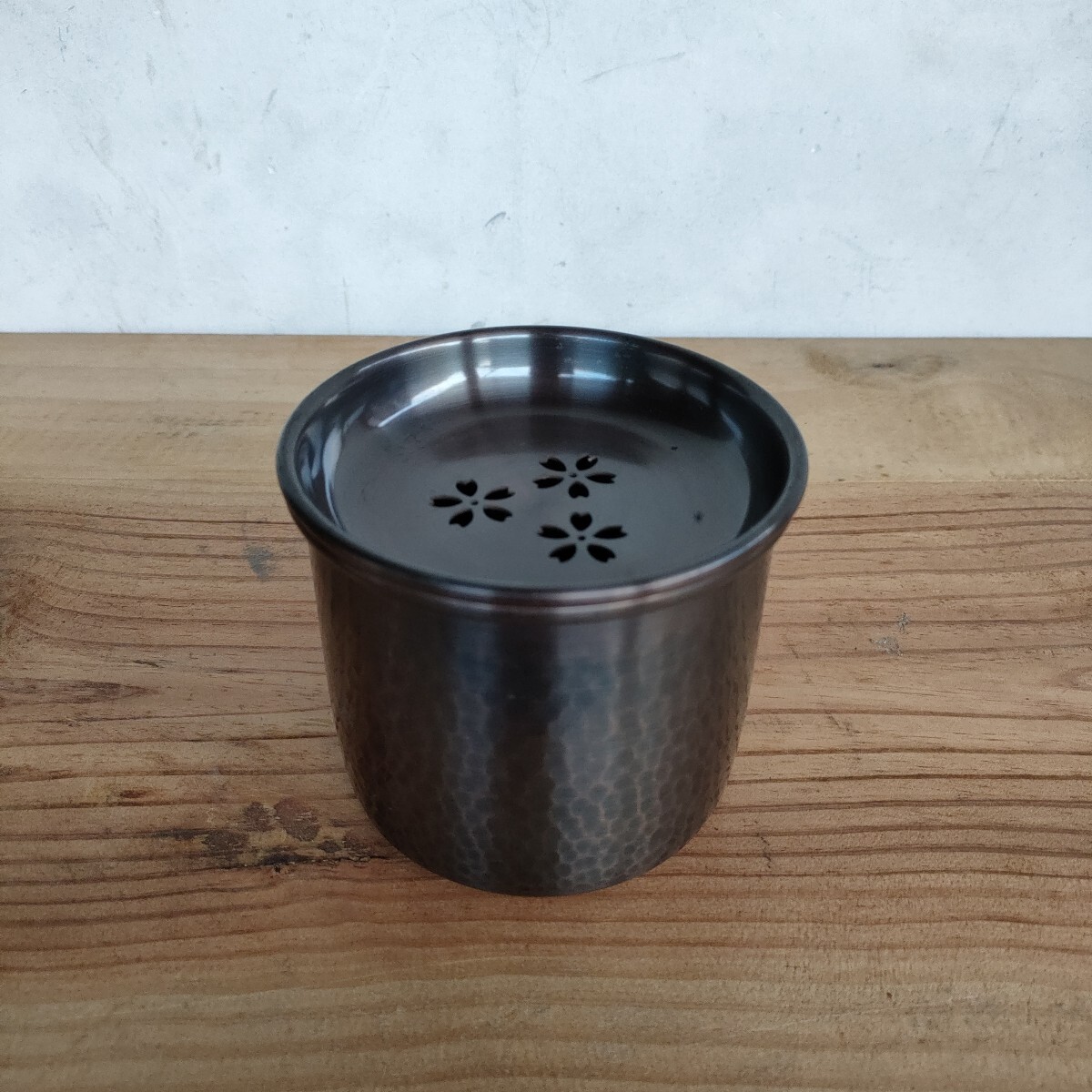 - 新光堂造 zaditen 純銅桜花紋透有蓋建水 1000円スタート 純銅 茶道具 金属工芸 茶こぼし