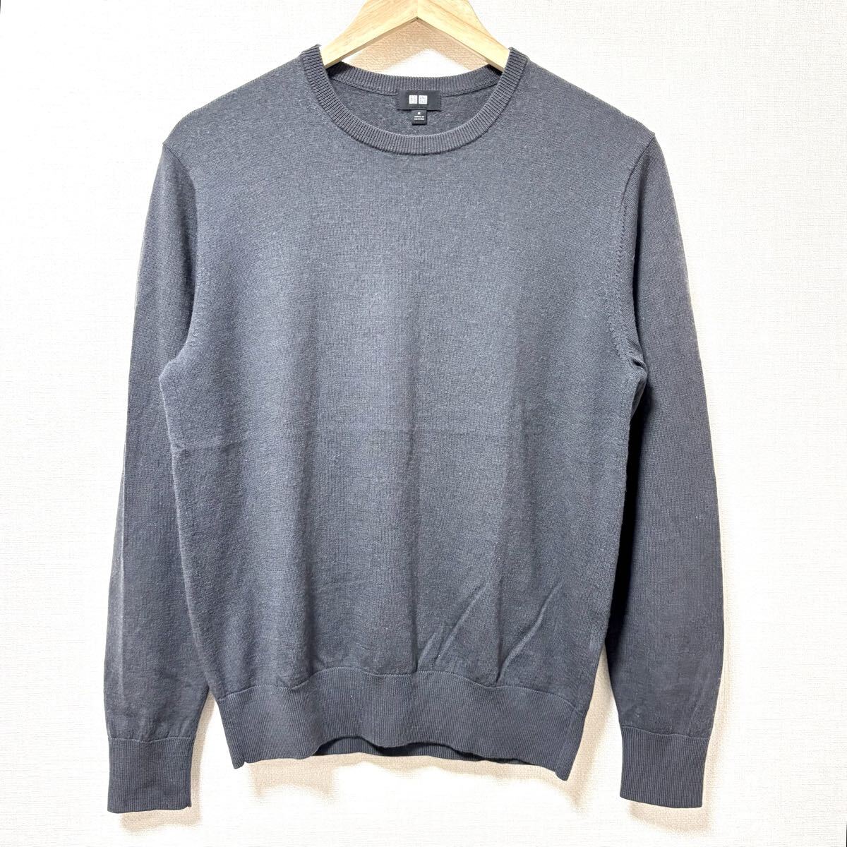 - 美品◎定番人気アイテム!【UNIQLO】ユニクロ クルーネック セーター メリノ ウール ニット 薄手 無地 オフィス グレー メンズ M /Y36765SS