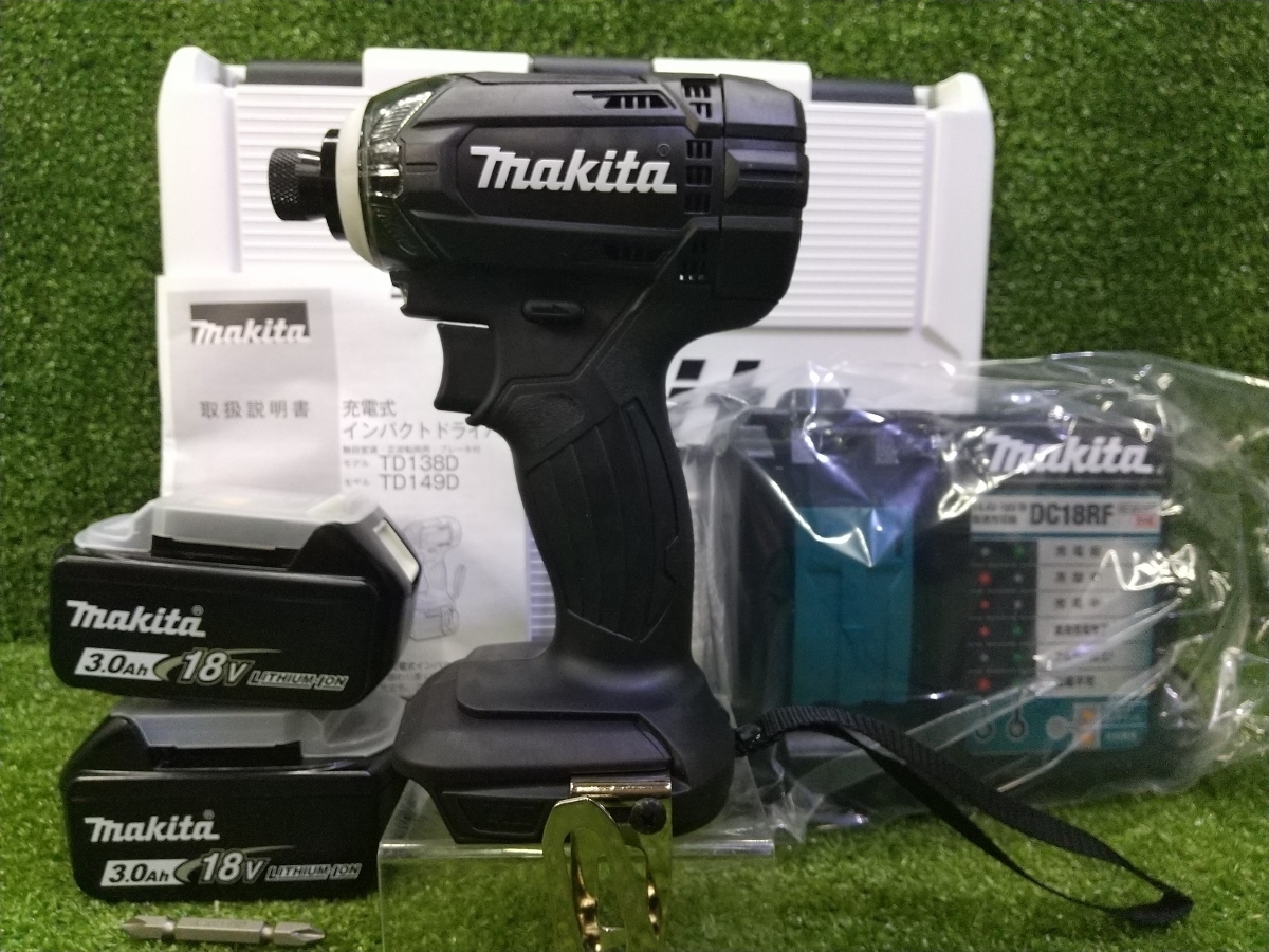 > 未使用 makita マキタ 18V 充電式 インパクトドライバ 3.0Ahバッテリー×2個 充電器 ケース付 ブラック TD149DRFXB ②