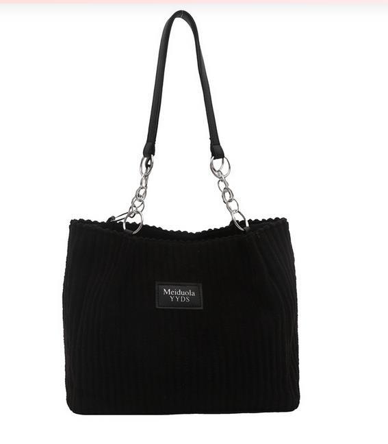 - 送料無料 匿名 トートバッグ コーデュロイ レディース ショルダーバッグ ブラック