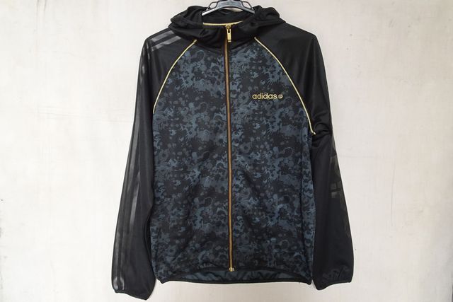 - adidas NEO/アディダスネオ/長袖パーカ/ジャージ素材/前ジップアップ/身頃ペンキプリント風/グレー/黒/ブラック/Mサイズ(10/9R7)