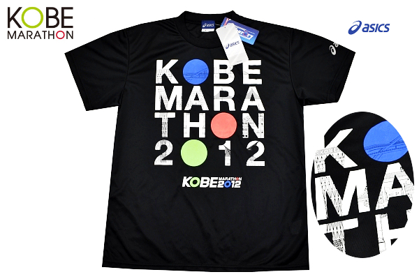 > Y-9904★送料無料★新品 未使用品★神戸マラソン 2012年 参加記念 asics アシックス製★ブラック黒色 速乾素材 半袖 T-シャツ L