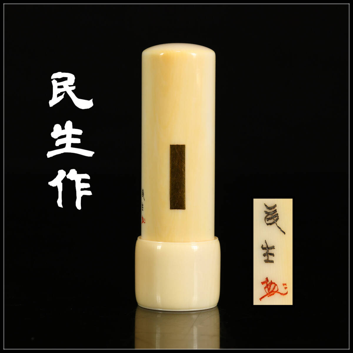 - 久1255 時代 【民生作】 東洋彫刻 本金象嵌 丸印材 印章 本体高6㎝ 径1.8㎝ 鞘付 美品 Ig