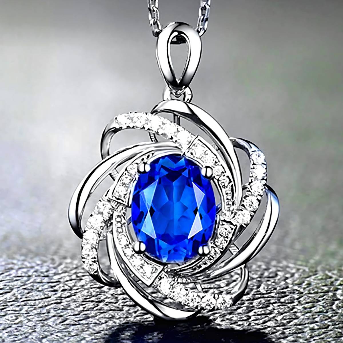 > 新品★送料無料★幸運の風車蒼玉サファイアダイヤプラチナ仕上925シルバーネックレス誕生日プレゼント旅行連休秋祭冬休ギフト国内発送