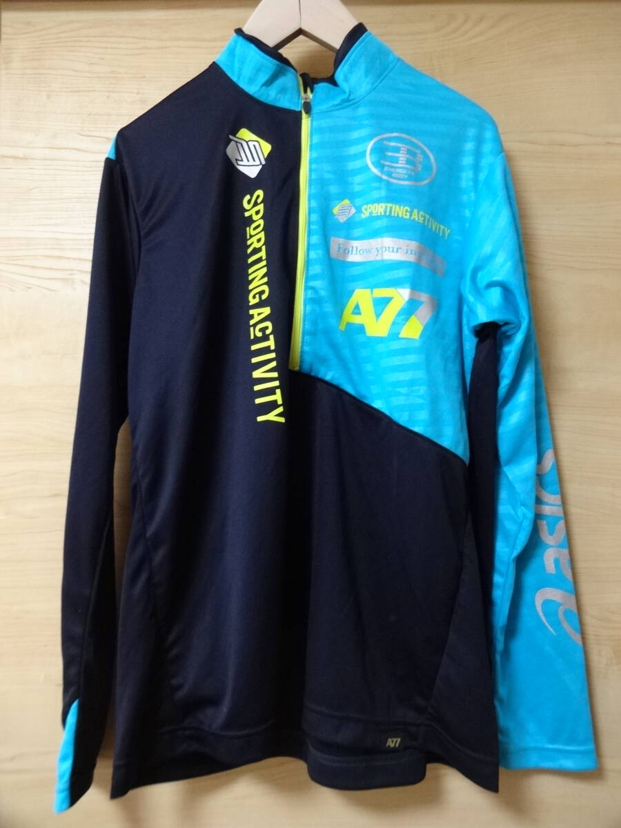 - asics A77 長袖Tシャツ サイズM R8587 黒水色 ハーフジップ アシックス