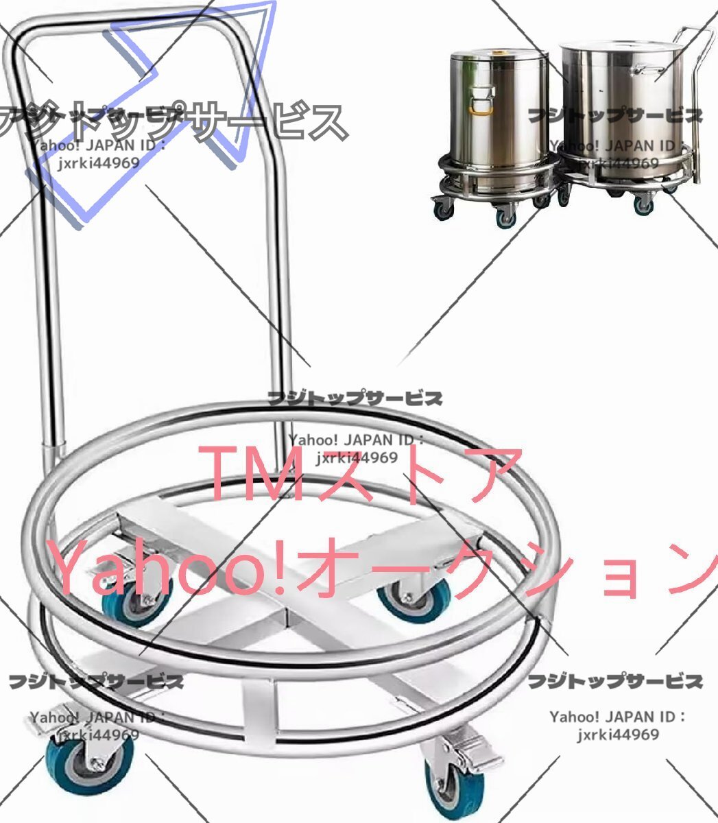 - 運搬用タンク台車 寸胴鍋用 運搬用台車 移動便利 ステンレス製 全周ガイド型 荷重300kg 円形台車 ドラム缶運搬車(直径62cm、ハンドル付き