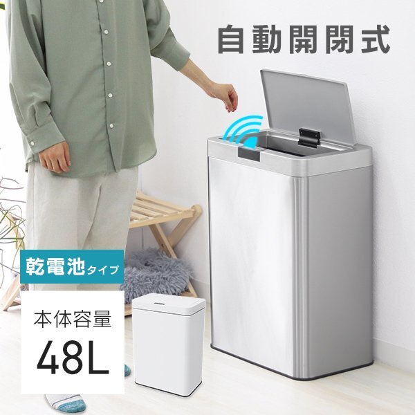 - 新品 センサー式 全自動 自動開閉ゴミ箱 大容量48L 非接触 フタ付き ダストボックス 電池式 スチール リビング キッチン 家庭用 白