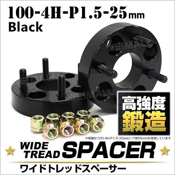 > Durax ワイドトレッドスペーサー 25mm 100-4H-P1.5 ナット付 黒 8C トヨタ 三菱 ホンダ マツダダイハツ 2枚セット ホイールスペーサー