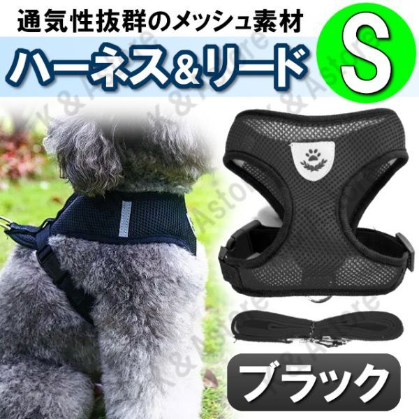 > ハーネス リード メッシュ ペット 犬用 猫用 散歩 抜けない 脱げない 首輪 胴輪 超小型犬用 小型犬用 Sサイズ 黒 ブラック