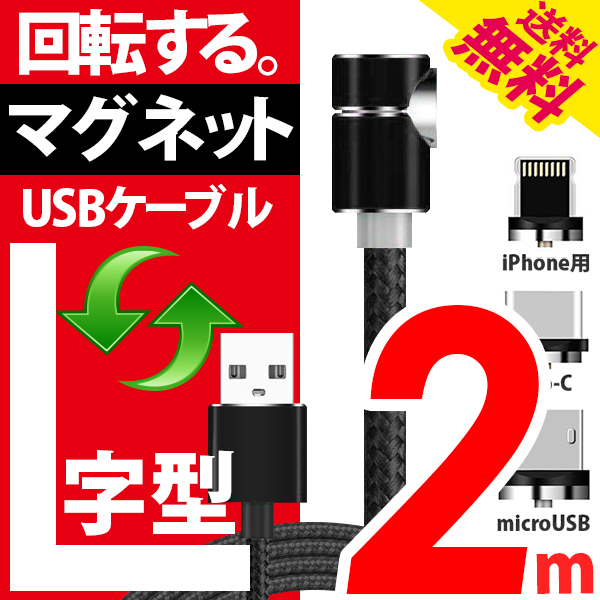 - iphone/android 用 L字マグネット スマホ 充電 ケーブル TYPE-C/MicroUSB/iPhone 3種類のアダプタセット 2m ゲームに ネコポス 送料無料