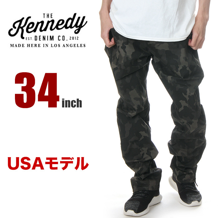 - 【新品】【34inch】KENNEDY DENIM リップストップ デニムパンツ 黒 迷彩 カモ柄 ケネディデニム スリムフィット メンズ ジーンズ