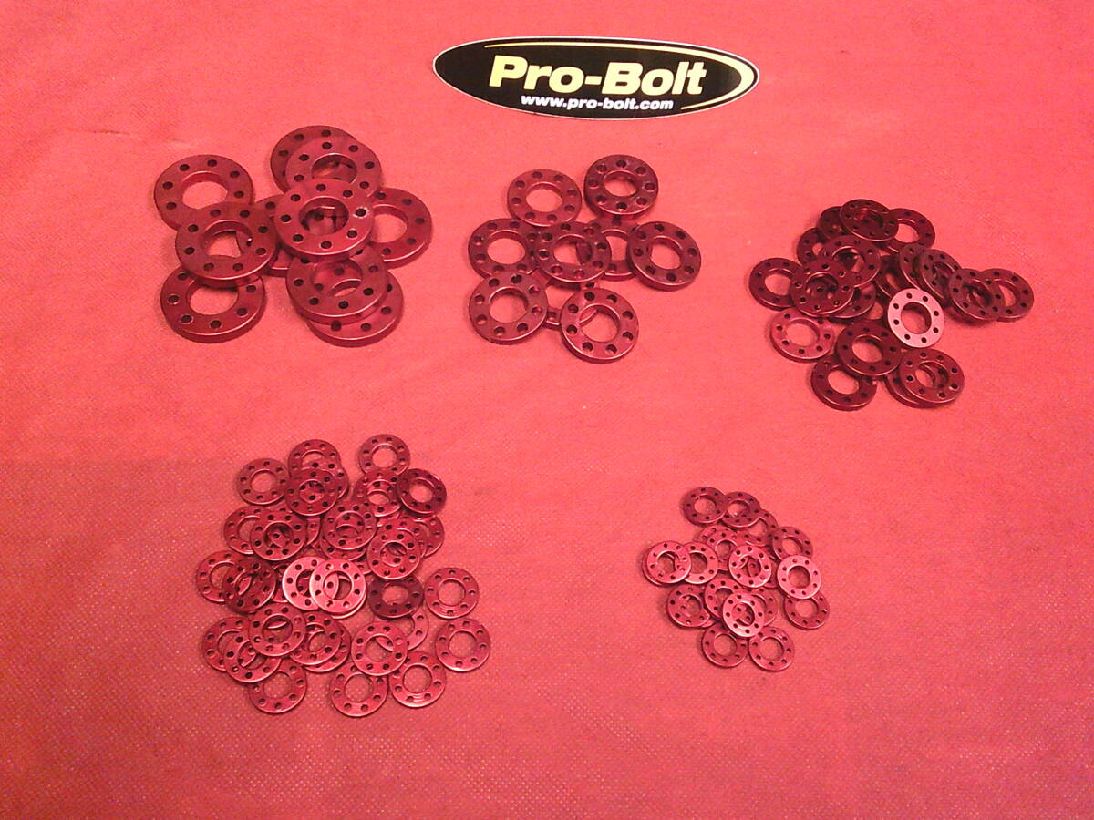> Pro-Bolt アルミ ドリルドワッシャ レッド M12 M10 M8 M6 M5 赤 プロボルト スペーサー カラー ワッシャー