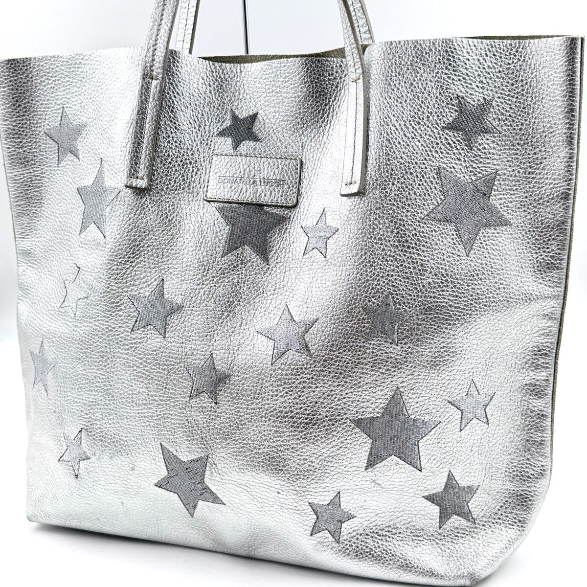 - 【希少】NUR DONATELLA LUCCHI ヌール ドナテッラルッキ トートバッグ シルバー レザー スター 刺繍 A4