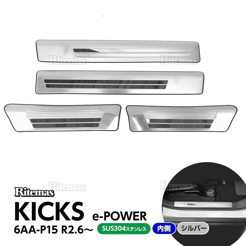 - キックス KICKS e-POWER 6AA-P15 インサイド サイド スカッフプレート ステップガード ガーニッシュ カスタムパーツ シルバー