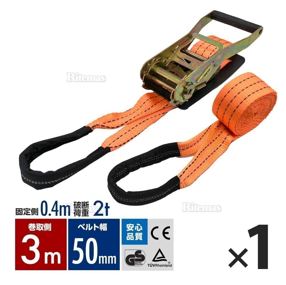 > ラッシングベルト ワッカ トラック用 幅 50mm ラチェットベルト ラチェット式 固定側0.4m 巻側3m 荷重2000kg タイダウンベルト 1本 1年保証