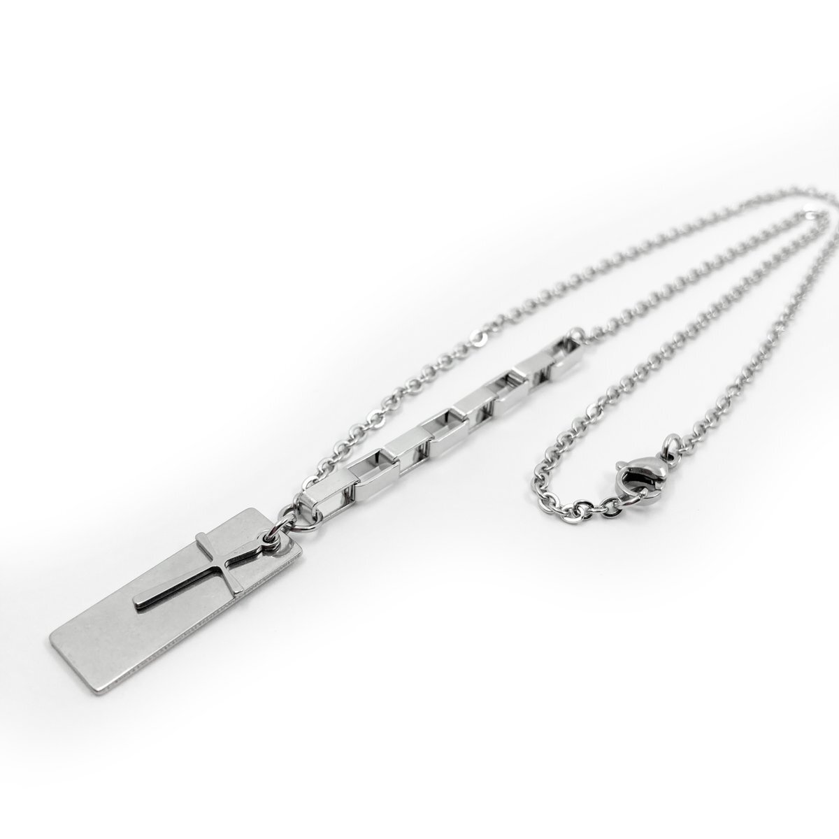 - チェーンがお洒落なステンレスネックレス タグミニクロスチャーム 40cm ST116