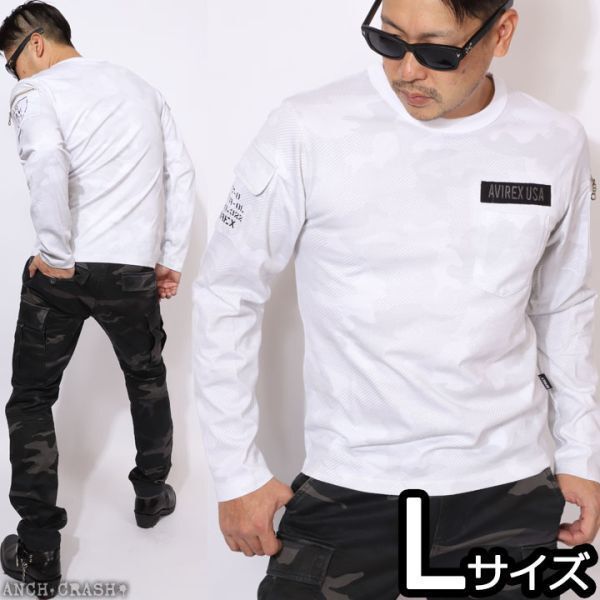- AVIREX アビレックス ファティーグ 長袖 Tシャツ ホワイトカモ【Lサイズ 】6113448 クルーネック ポケット ミリタリー