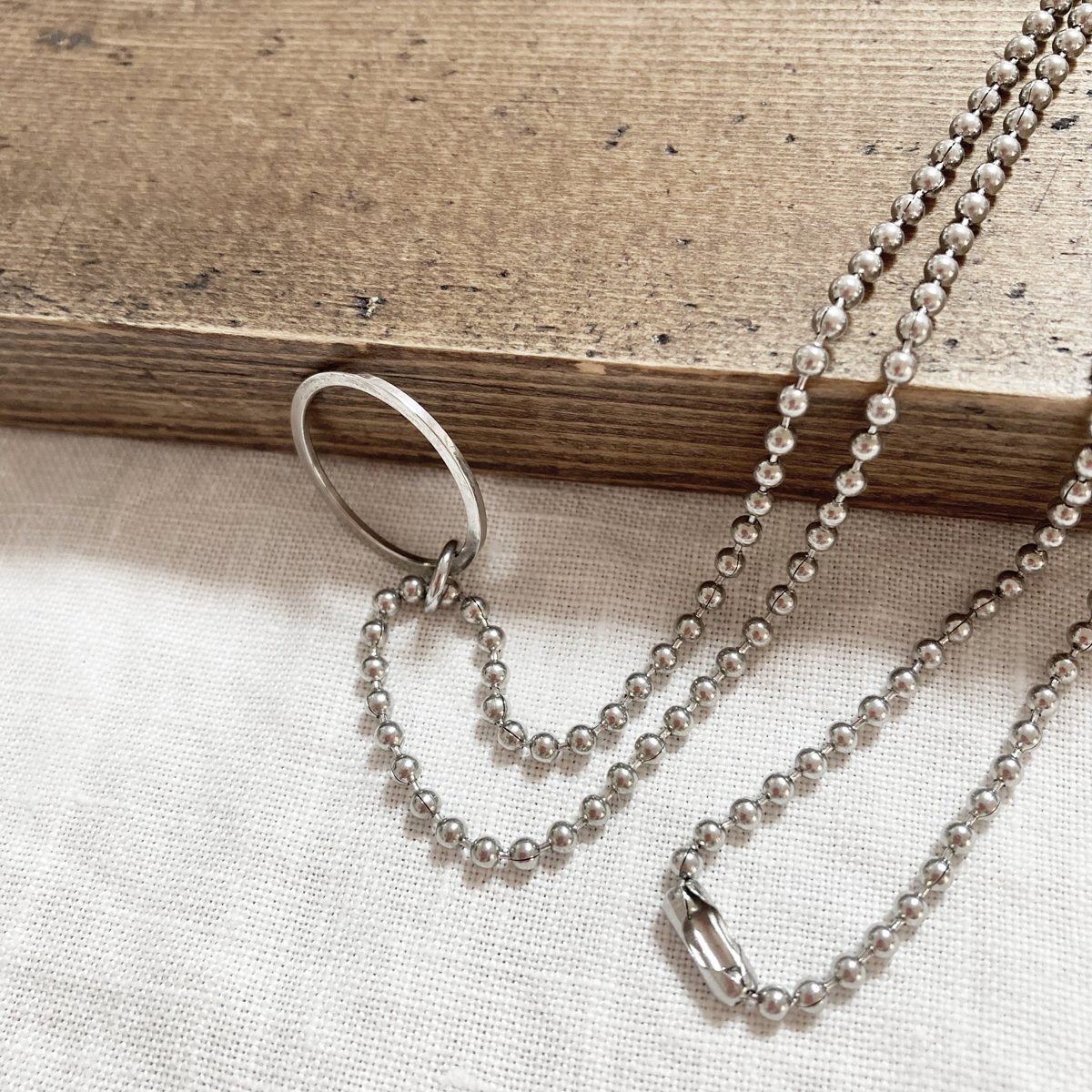 - メガネホルダーリング ボールチェーン ネックレス2.4mm幅 60cm付き リング厚み1mm NMR14