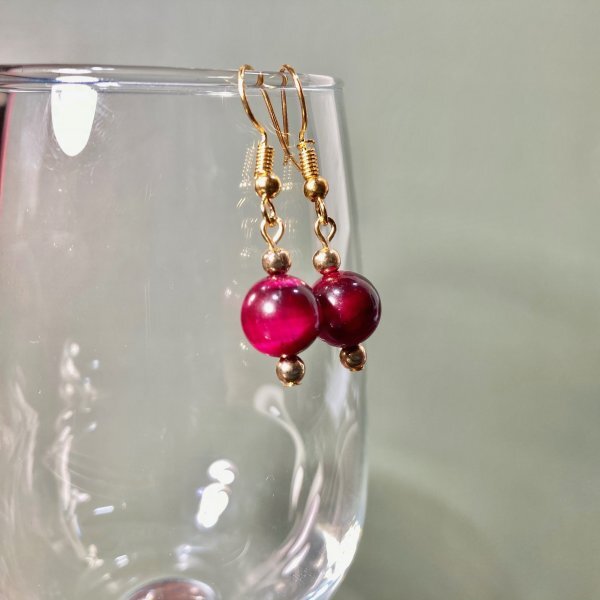 - ピンクタイガーアイ ピアス 一粒フックピアス 10mm (ゴールド) イヤリング、樹脂フック変更可 樹脂ピアス シンプル パワーストーン