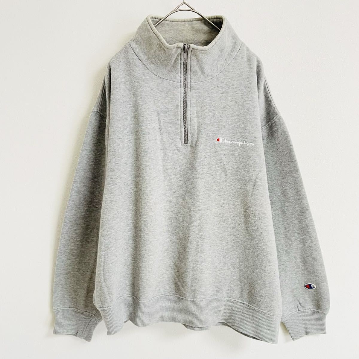 - 【チャンピオン/青タグ】高級ハーフジップスウェットトレーナー/杢グレー/M表記/衝撃プライス!ヴィンテージ復刻クラシックモデル!NC29