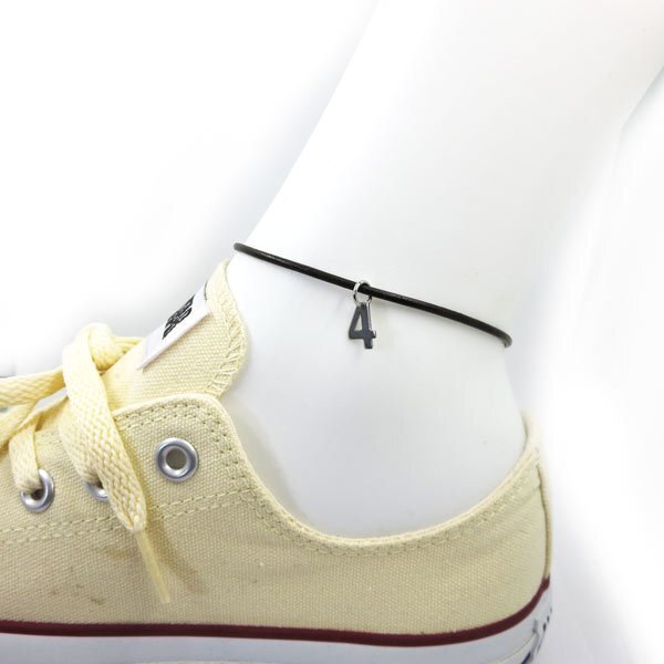- 4 レザーアンクレット ナンバーチャーム付き ステンレス金具 27cm(23+4cmアジャスター)