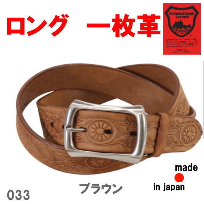 - ブラウン ロング 栃木レザー ムラ染め カービング 型押し 5033 牛革 ベルト 日本製