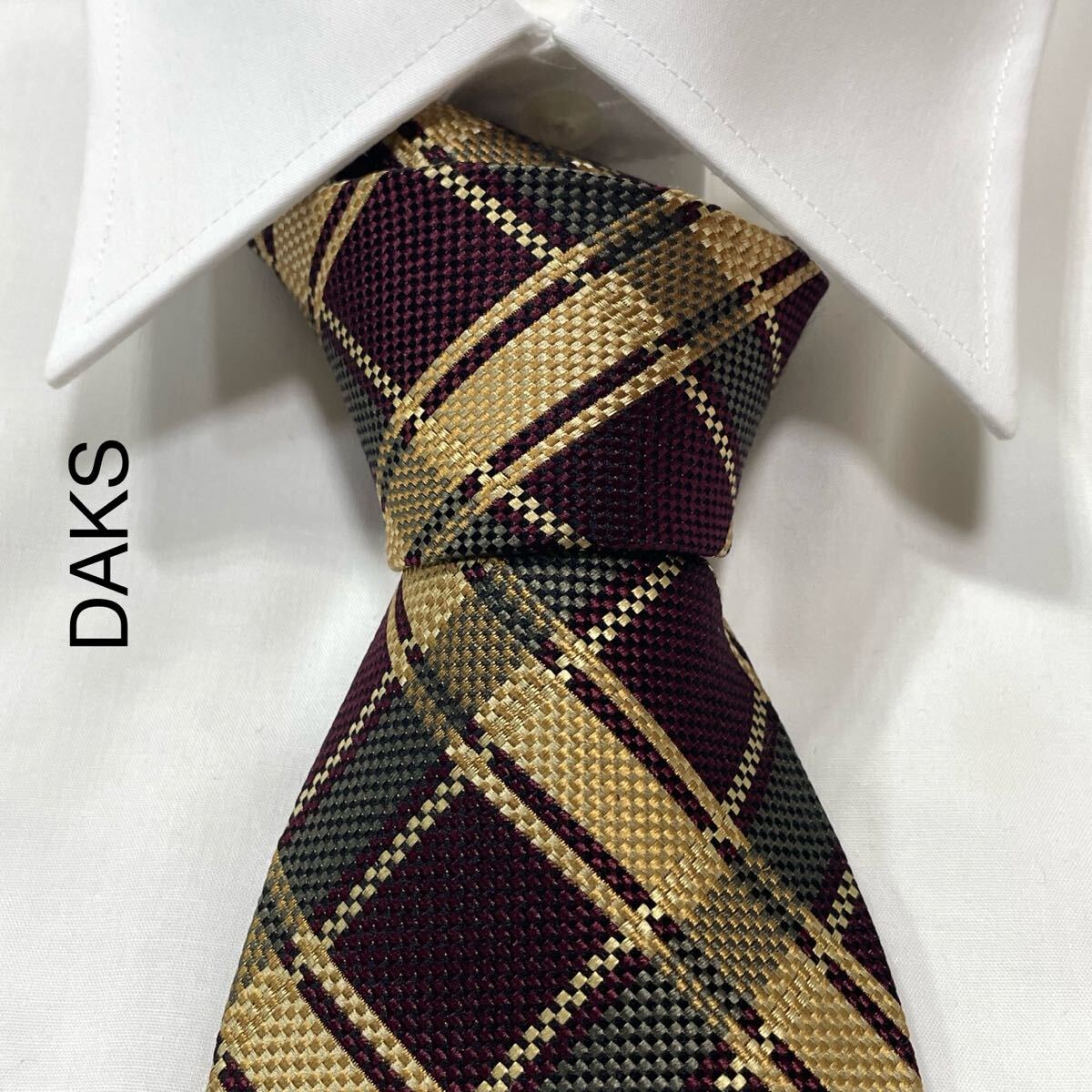 - DAKS ダックス チェック ジャガード シルク ネクタイ ワイン ライトブラウン カーキ ベージュ TG2959