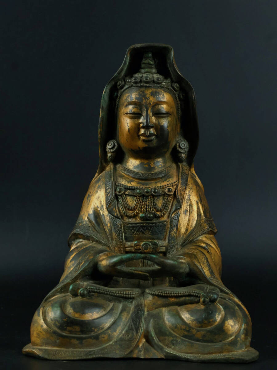 - 『館蔵珍品 紫銅製 塗金 觀音菩薩 仏具 宗教 置物 賞物』稀少珍蔵品 古賞物 貴重物品 収蔵品 中国古美術 時代物 古董品