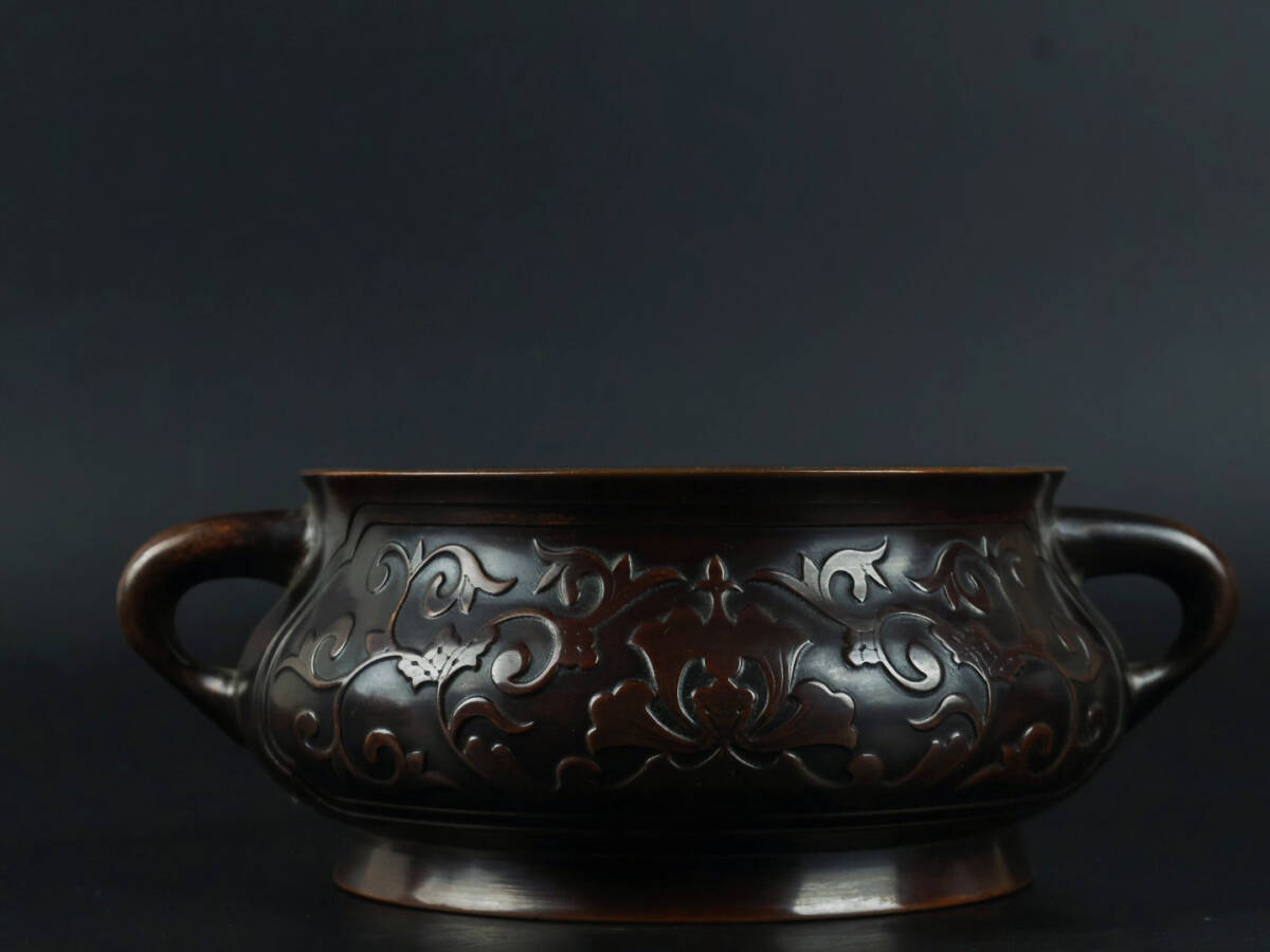 - 『館蔵珍品 紫銅製 浮彫 纏枝如意 香爐 置物 賞物』稀少珍蔵品 古賞物 貴重物品 収蔵品 中国古美術 時代物 古董品