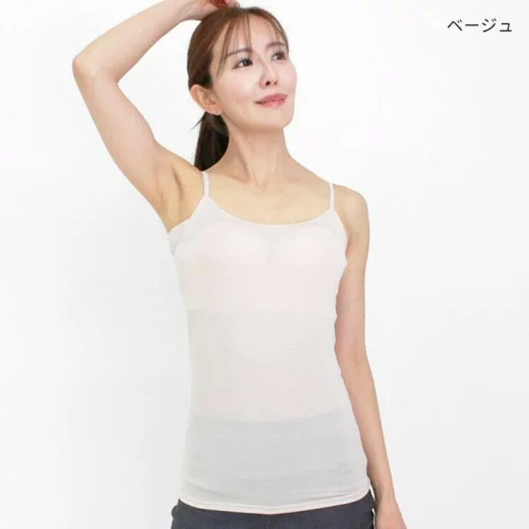 > 汗取りインナー キャミソール ベージュ L 汗取りパッド付き 綿混 春夏 吸水速乾 抗菌防臭 汗ジミ対策 脇汗パッド 汗取りキャミソール 新品