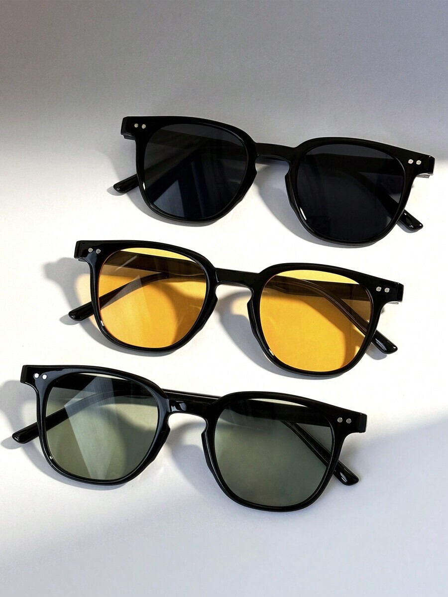 > アクセサリー メンズ アイアクセサリー 3個組 メンズ スクエア ファッションサングラス、ブラック サマーサングラス、スタッズ付き