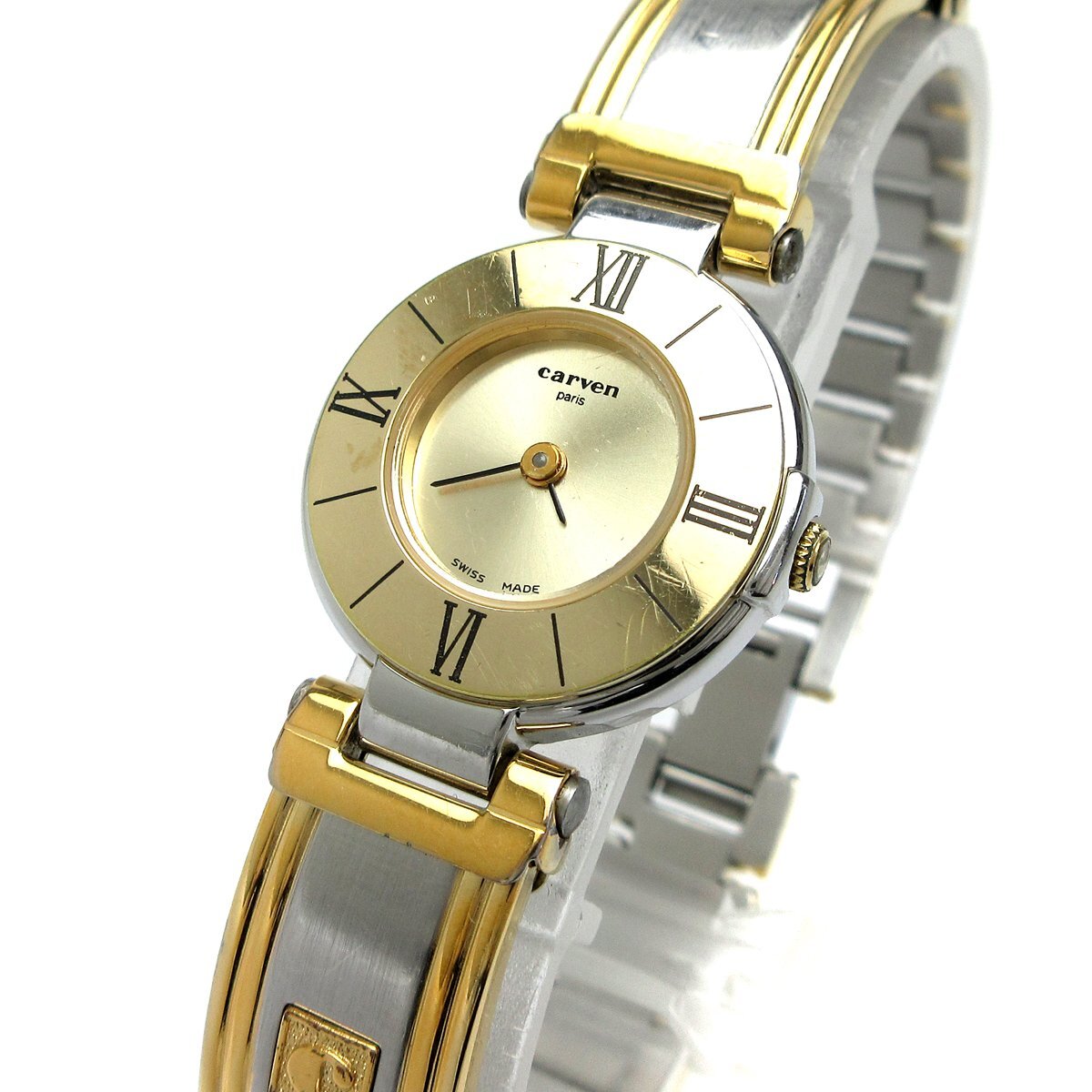 - カルヴェン ラウンドゴールド レディース ブレスレットウォッチ ゴールドコンビ 時計 CARVEN 婦人 クォーツ 稼動品