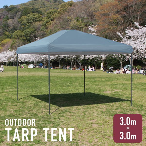 > タープテント 3m 収納ケース付き 軽量 ワンタッチスチールフレーム 簡単組立 UVカット キャンプ アウトドア イベント BBQ ミスティサボン