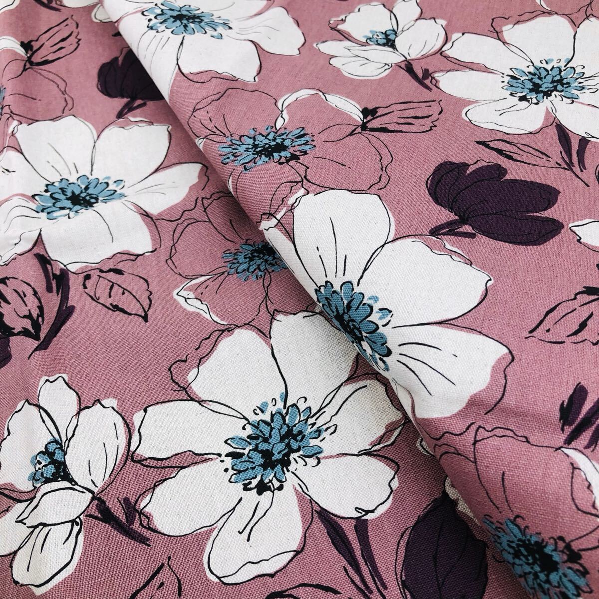 - 1m 日本製 綿麻キャンバス お花のコットンリネンキャンバス 生地 花柄 北欧 はぎれ コットンリネン 手書き風