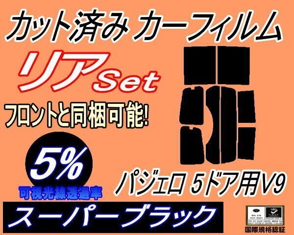 - カーフィルム スーパーブラック カット済み リアセット パジェロ 5ドア V9 (b) スモーク V97W V93W V98W 5ドア用 V9系 ミツビシ