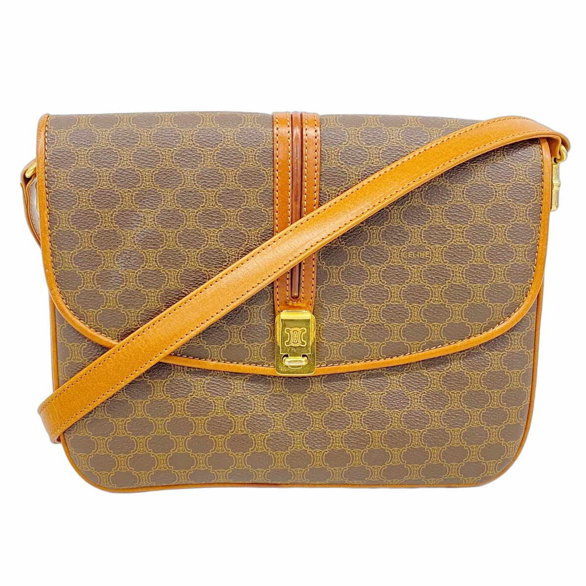 > ★最終価格【5ic3698】セリーヌ ショルダーバッグ マカダム PVC ブラウン ゴールド金具【中古】レディース