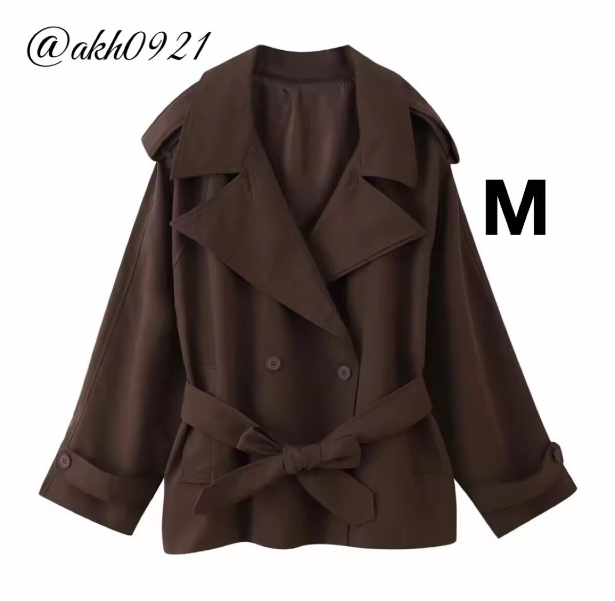 - 新品未使用★2025 秋新作★vintage ヴィンテージ レトロ brown ハーフ丈 トレンチコート アウター Mサイズ レディース★ZARA 好きな方に