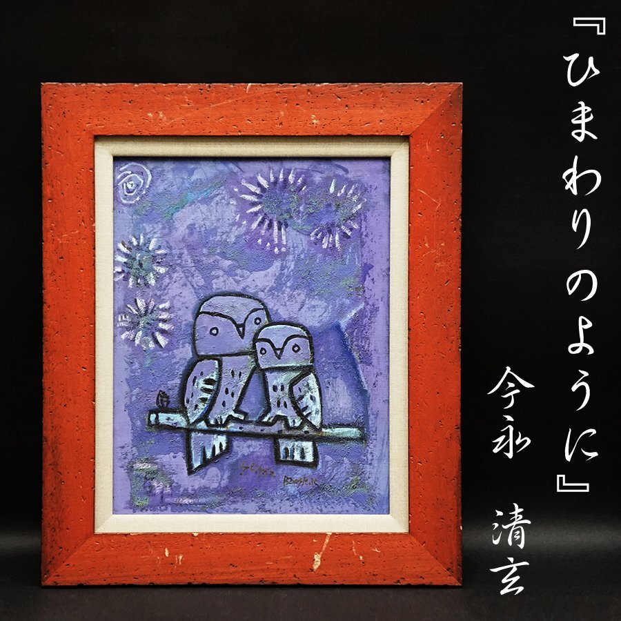 > 今永清玄『ひまわりのように』6号 梟 ふくろう 油彩 油絵 直筆 風景画 裏書サイン 絵画 額装 美術 芸術 アート 古美術品 真作保証品