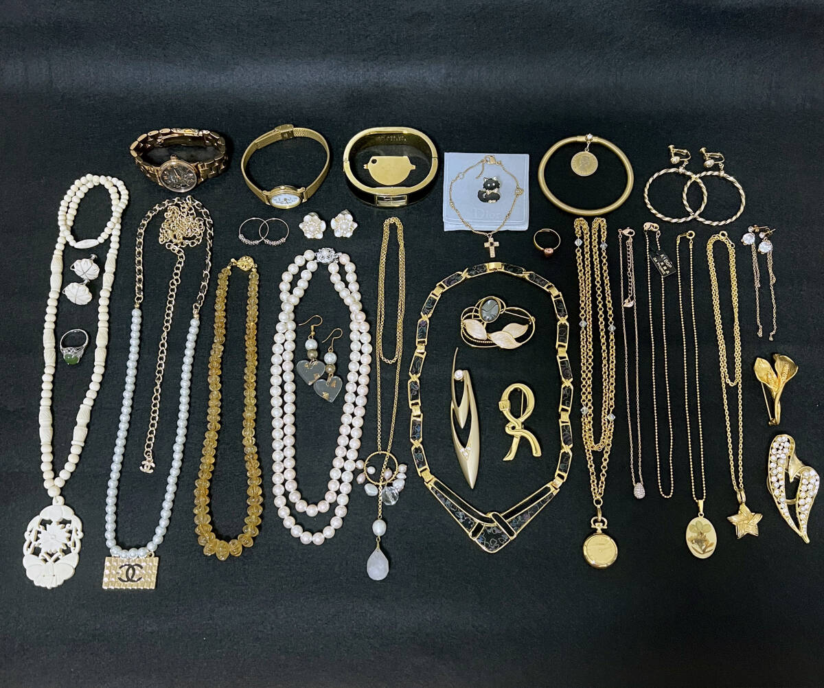 - 1円 アクセサリー まとめ Christian Dior Swarovski kate spade等 ネックレス ブローチ 指輪 イヤリング 時計 他 ゴールドカラー 刻印含む