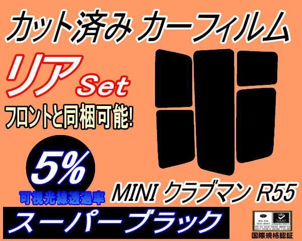 - カーフィルム スーパーブラック カット済み リアセット MINI クラブマン R55 (s) スモーク ML16 MM16 MMJCW ZG16 ZF16 MHJCW