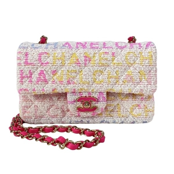 > シャネル CHANEL ショルダーバッグ A69900 ミニマトラッセ ラムスキン 白×ピンク×マルチ 美品 バッグ