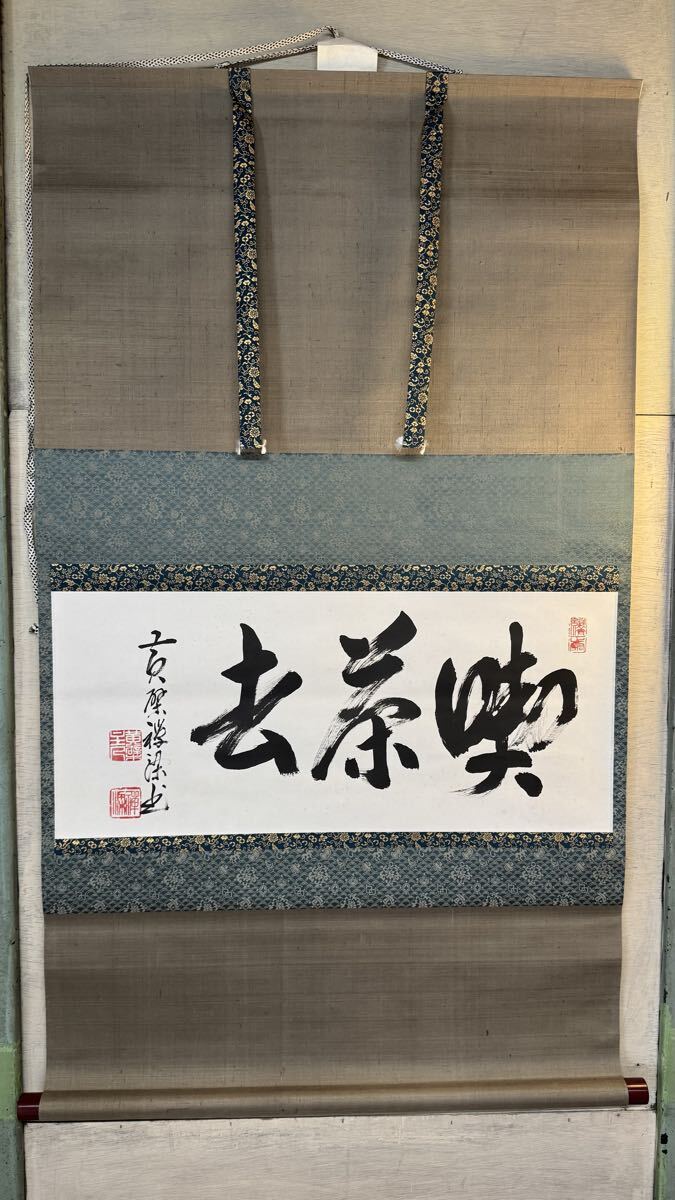 - 真作 安部禅梁 『 喫茶去 』 黄檗宗五十六代管長 万福寺住職 掛け軸 滋賀県 山田玉田 仏教 禅語 掛軸