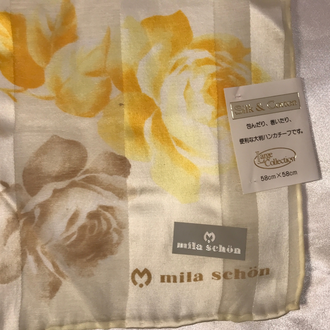 - mila schon Silk Cotton 大判ハンカチーフ 綿51% 絹49% 58cm x 58cm 川辺(株) 未使用品
