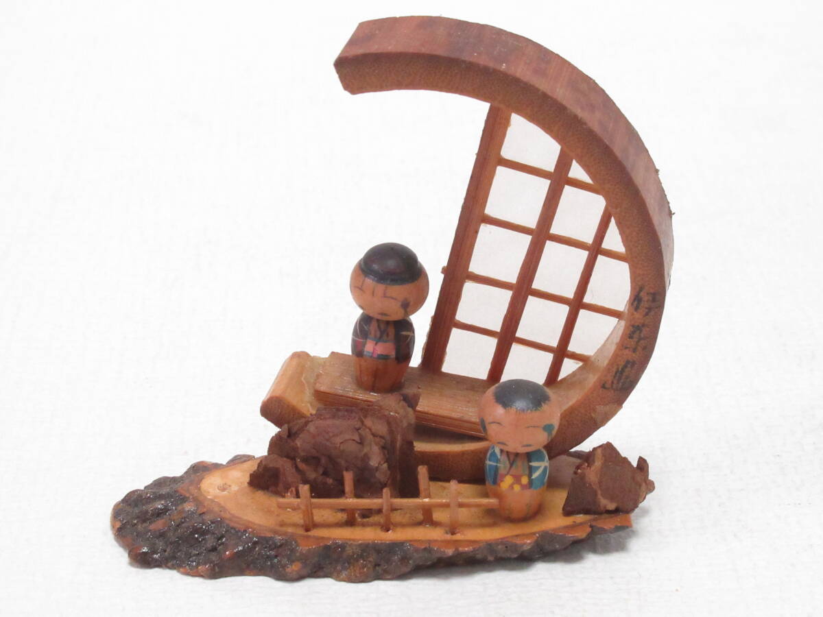 > 昭和レトロ おみやげ こけし 伊東温泉 ジオラマ風 凝った作りです /観光/Vintage KOKESHI DOLL Japanese Souvenir