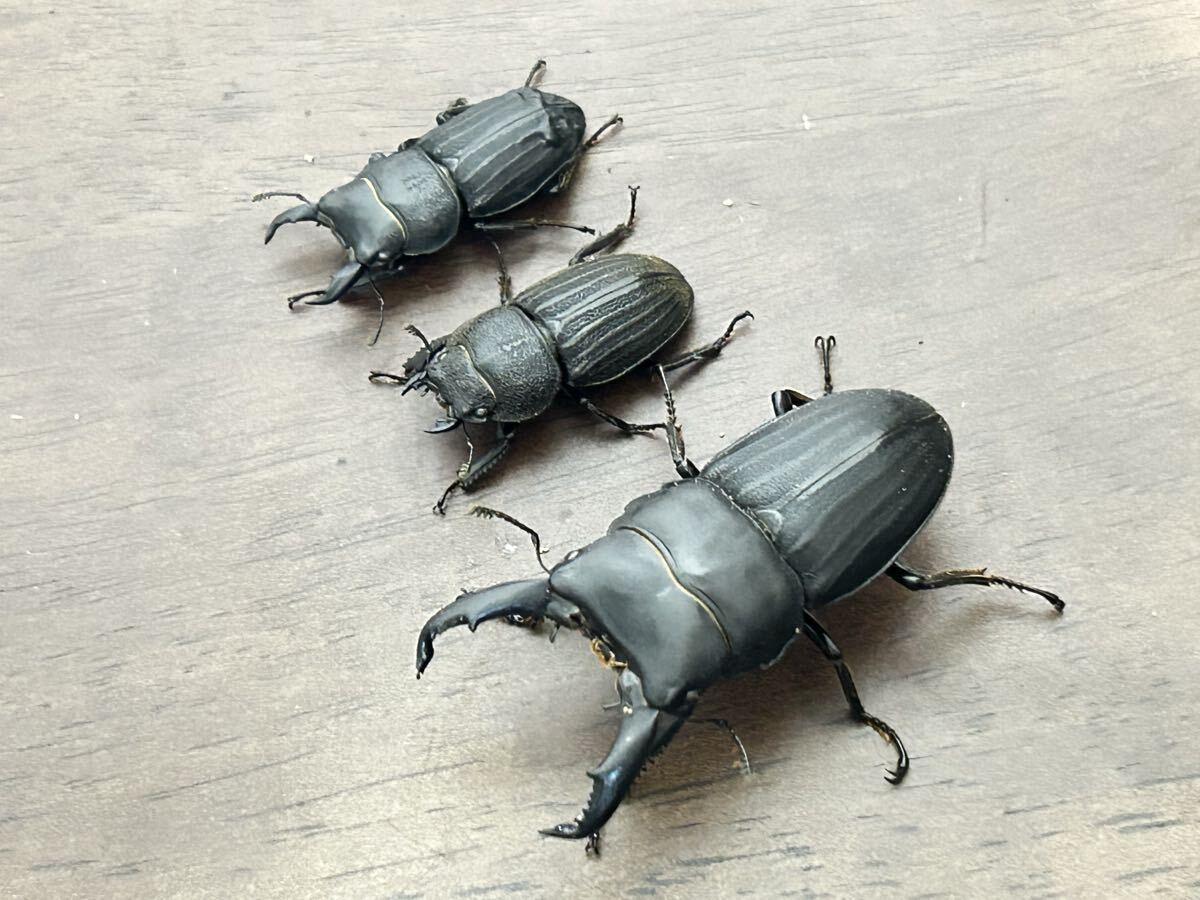- ホワイトアイ スジブトヒラタ 新成虫♂56mm ペア +おまけ♂ スジブトヒラタクワガタ
