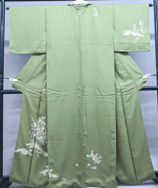 > 《京都一輝堂》【着物】付下げ 金彩 花文 重ね衿付 一つ紋 身丈約162.5cm 裄丈約64.5cm 24Z-1886